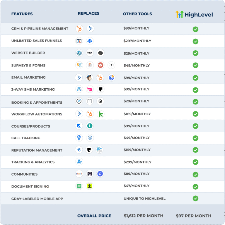 The HighLevel Platform is everything that marketers need to manage their leads, websites, funnels, calendars and many other services that are needed to maintain a customer.